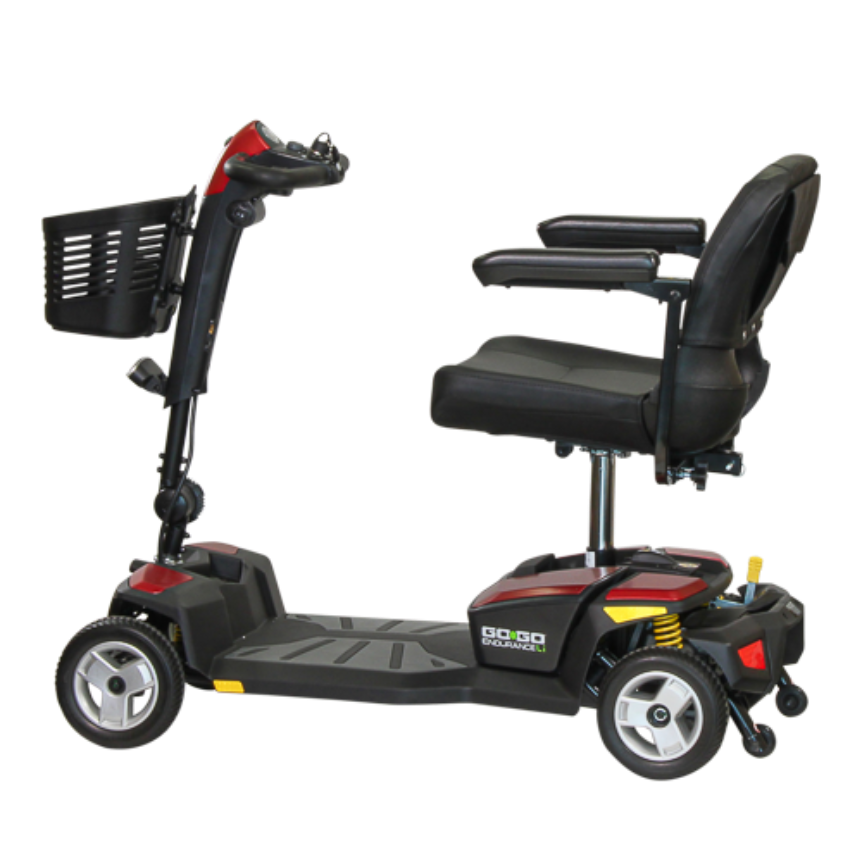 Mit dem Go Go®Endurance war das Reisen noch nie so einfach! Dieser 4-Rad-Scooter hat alles, was Sie für eine sichere und bequeme Reise brauchen. Mit dem serienmäßigen 8-AH-Lithium- Ionen-Akkupack* ist der Go Go Endurance perfekt für Flugreisen geeignet. Die federleichte Demontage sorgt für die nötige Portabilität. Genießen Sie eine sanfte, komfortable Fahrt mit der Comfort-Trac-Federung.
