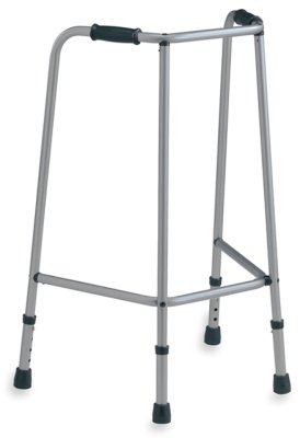 Technische Daten: Gesamtbreite 59 cm | Gesamttiefe 41 cm | Gesamthöhe 78 bis 85 cm | Breite zwischen den Handgriffen 36 cm | Handgriffhöhe 78 bis 85 cm | Abstand zwischen den Standbeinen vorn 32 cm, hinten 53 cm | Höhe Boden bis Verbindungsstange 25 cm | Abstufung Höhenverstellung 2,5 cm | Belastbarkeit 130 kg | Gewicht 2 kg | Farbe silber | VE 1 Stück.