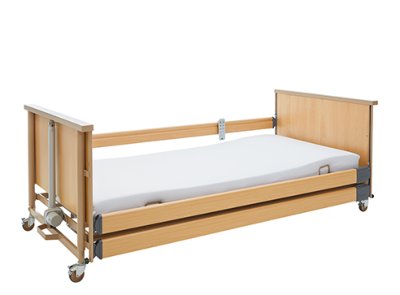 Pflegebett DALI, kabelloser Handschalter 19.40.01.3041 ist per Bluetooth mit dem Bett vernetzt.Das DALI ist ein robustes und wartungsarmes Bett das aus hochwertigen Materialien hergestellt wird.Produktdetails: sparsames 24 Volt-Antriebssystem | 4-geteilte Liegefläche mit Federholzleisten | Rücken- und Oberschenkellehne elektrisch verstellbar | Handschalter mit selektiver Sperreinrichtung | Fußtieflage einstellbar | werkzeuglos montierbare Seitensicherung mit Easy-Click-System | leicht bremsbare Rollen | inkl. Aufrichter und Triangelgriff | Lieferung auf Lager- und Transporthilfe. Technische Daten: Außenmaße 102 x 218 cm | Liegeflächenmaße 90 x 200 cm | Liegeflächenhöhe von 40 bis 80 cm | Unterfahrbarkeit 19 cm | Gewicht 97 kg | sichere Arbeitslast 185 kg | Gestellfarbe topas, Dekor Buche natur | VE 1 Stück.*