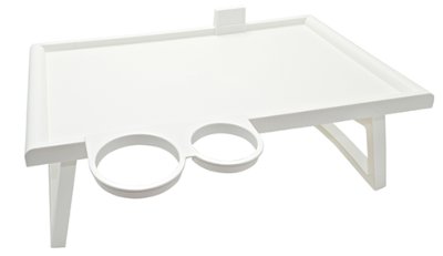 Produktdetails: aus Kunststoff | mit abnehmbarem Glas- und Flaschenhalter | flach zusammenklappbar | Maße ca. 53 x 32 cm | aufgeklappt ca. 20 cm hoch | Farbe weiß | VE 1 Stück.