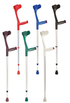 Produktdetails: Oberteile aus hochwertigem, glasfaserverstärktem Kunststoff | Spezial-Leichtmetallrohre | 9-fache Verstellmöglichkeit im Unterteil | Gummikapseln aus Naturkautschuk mit Metalleinlage, Innendurchmesser 16 mm | Reflektoren vorne am Griff und hinten an der Unterarmschale.