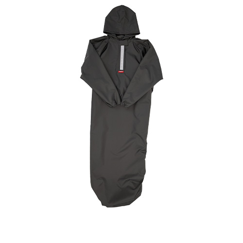 Gut zu wissen: Das anthrazitfarbene Regencape ist in zwei verschiedenen Größen erhältlich: