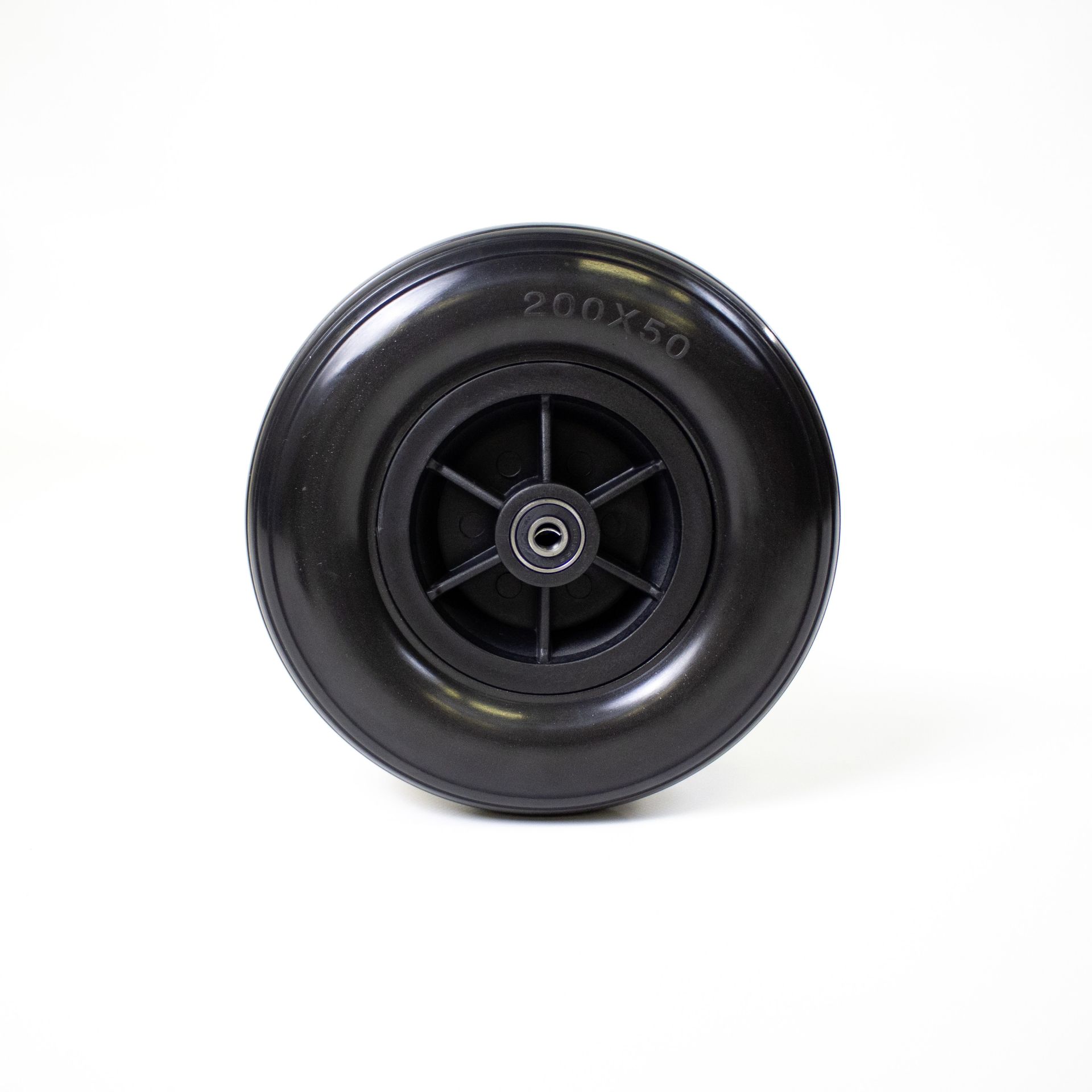 Die Vorderräder sind aus Vollgummi und daher deutlich pannensicherer als Luftreifen. Dadurch gewährleisten wir einen bequemen Fahrkomfort und eine besondere Langlebigkeit des Rads.